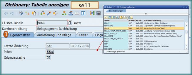 Hier sehen sie das Datum der letzten Änderung und insbesondere das Paket (siehe auch Tabelle DD02L), das in der SAP Welt dazu dient, einzelne Repository Objekte (sowohl Datentypen als auch Programme) zu gruppieren.